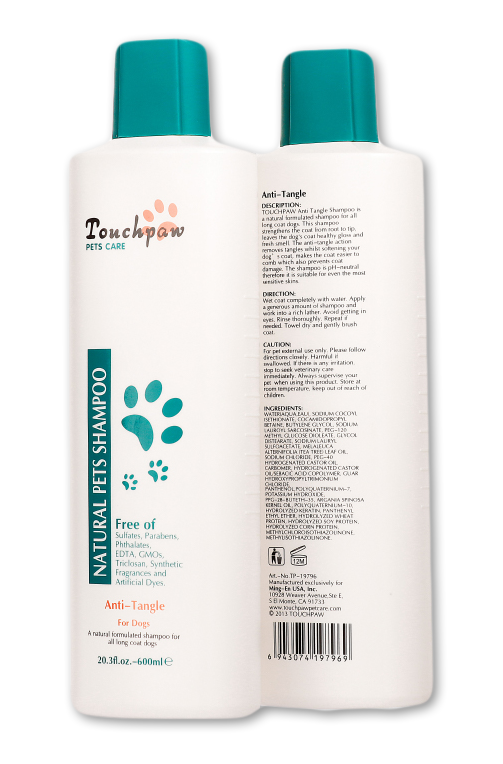 A hosszú szőrű kutyák ápolása gyakran macerás: gubancok, csomók, nehézkes kifésülés… A Touchpaw Anti-Tangle Shampoo ezzel a problémával számol le. Speciális természetes összetevői lágyítják, kisimítják és megerősítik a szőrszálakat, így a bunda könnyebben fésülhető, fényes és ápolt lesz.