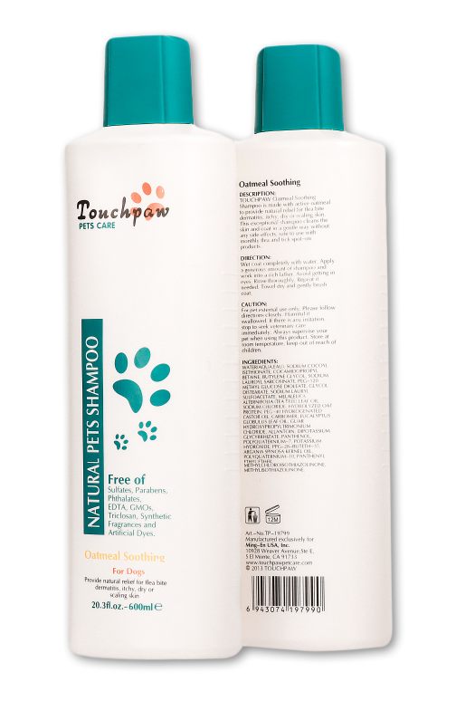 A Touchpaw Oatmeal Soothing sampon kifejezetten az irritált, kipirosodott vagy viszkető bőrű kutyáknak készült. A zab természetes nyugtató hatású összetevő, amely azonnali enyhülést hoz, miközben gyengéden tisztítja és táplálja a bundát.